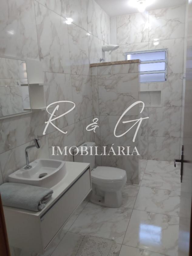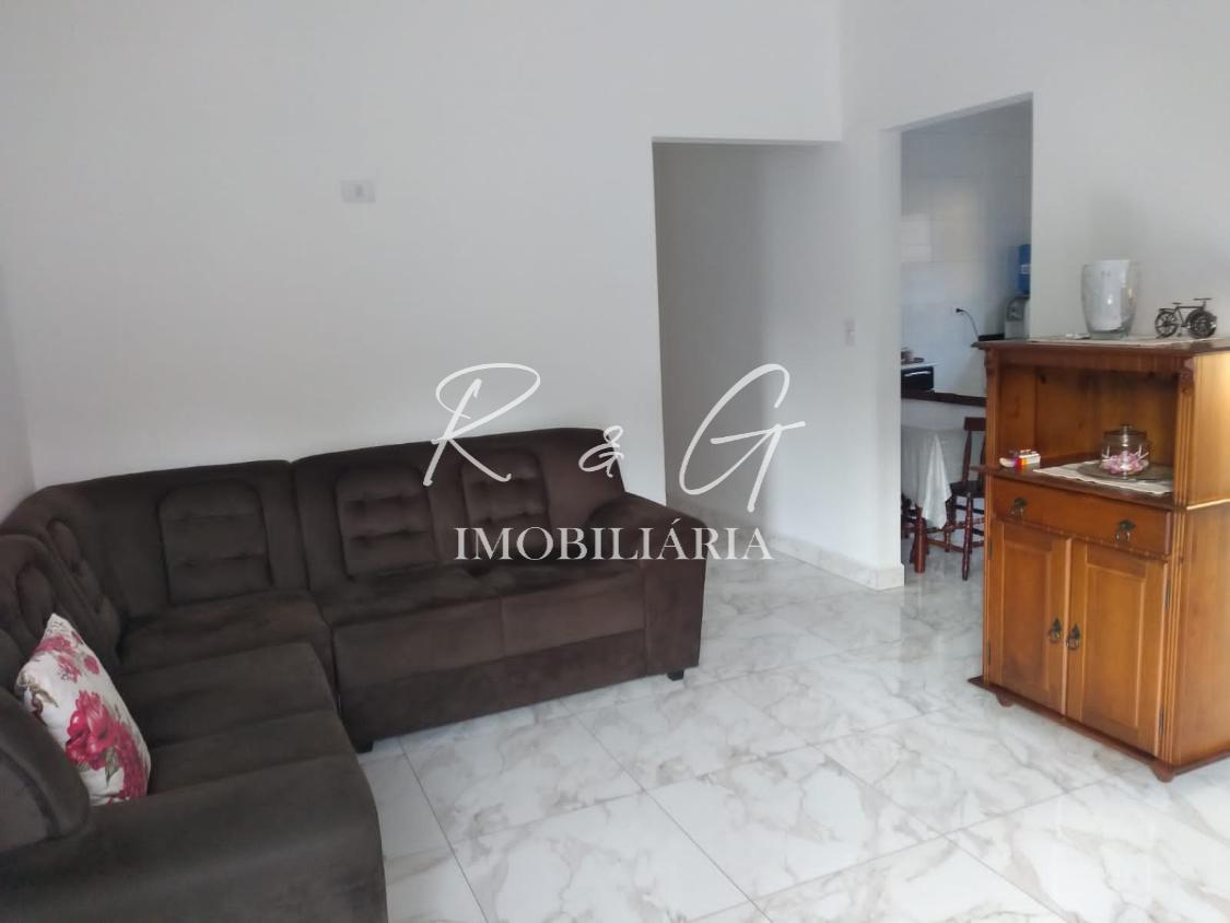 A casa contém sala de estar ampla e iluminada, com janelas grandes que proporcionam excelente iluminação natural, cozinha aconchegante com design clean e balcão planejado, Três